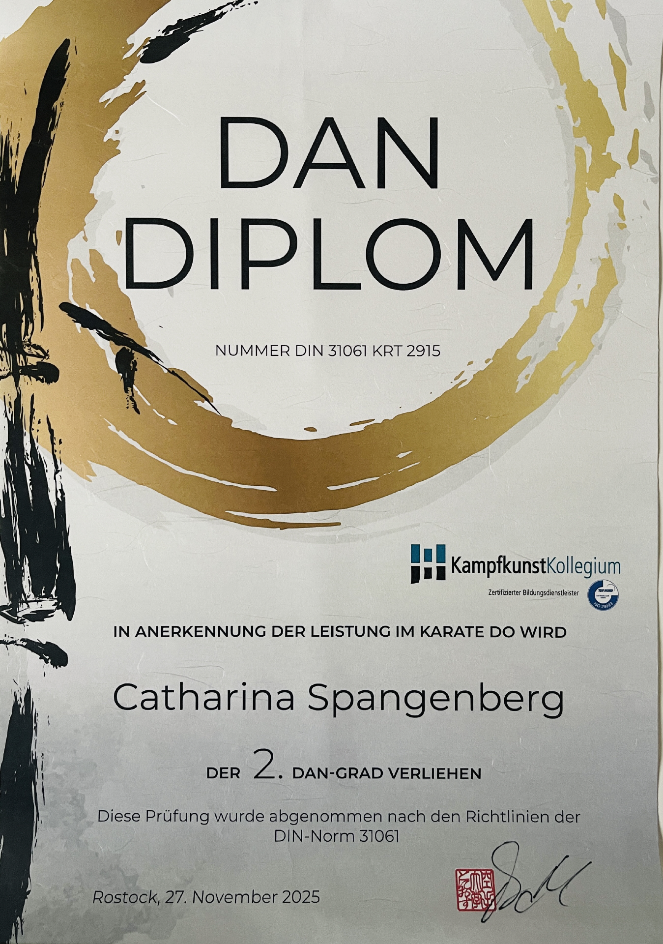 Ich heiße Catharina und mache seit 2001 die faszinierende Kampfkunst Karate. Seit 2012 unterrichte ich zudem zahlreiche Kindergruppen im Bereich Karate in Rostock und bin seit 2015 freiberuflich selsbständig als Karatelehrerin mit meiner eigenen Karateschule.